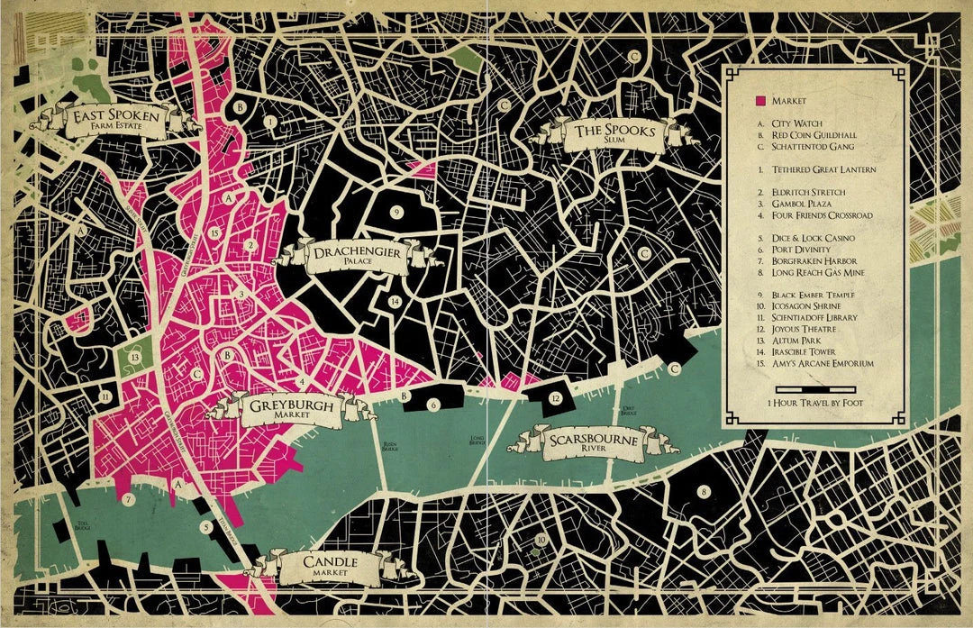 From the Market’s southern spur, the long, serpentine Greyburgh Street slithers and wends its way across the entirety of the Strigham District, bringing the insidious and inscrutable interests of noble houses, and other intrigues into the market where tensions sometimes explode into murderous melee or arcane duels.