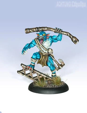 The Deep One Reef Breaker is a brutal warrior unleashed by the Elders and imbued with the power of the deep to break the enemy’s morale, smash their weapons and take out their strongest foes. Miniature shown painted.