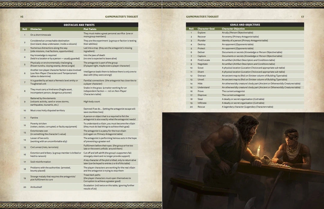 - A 32-page toolkit filled with random tables and tips to inspire and inform the